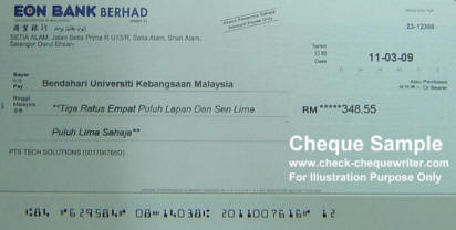 Check & cheque writer Software - Cheque sample